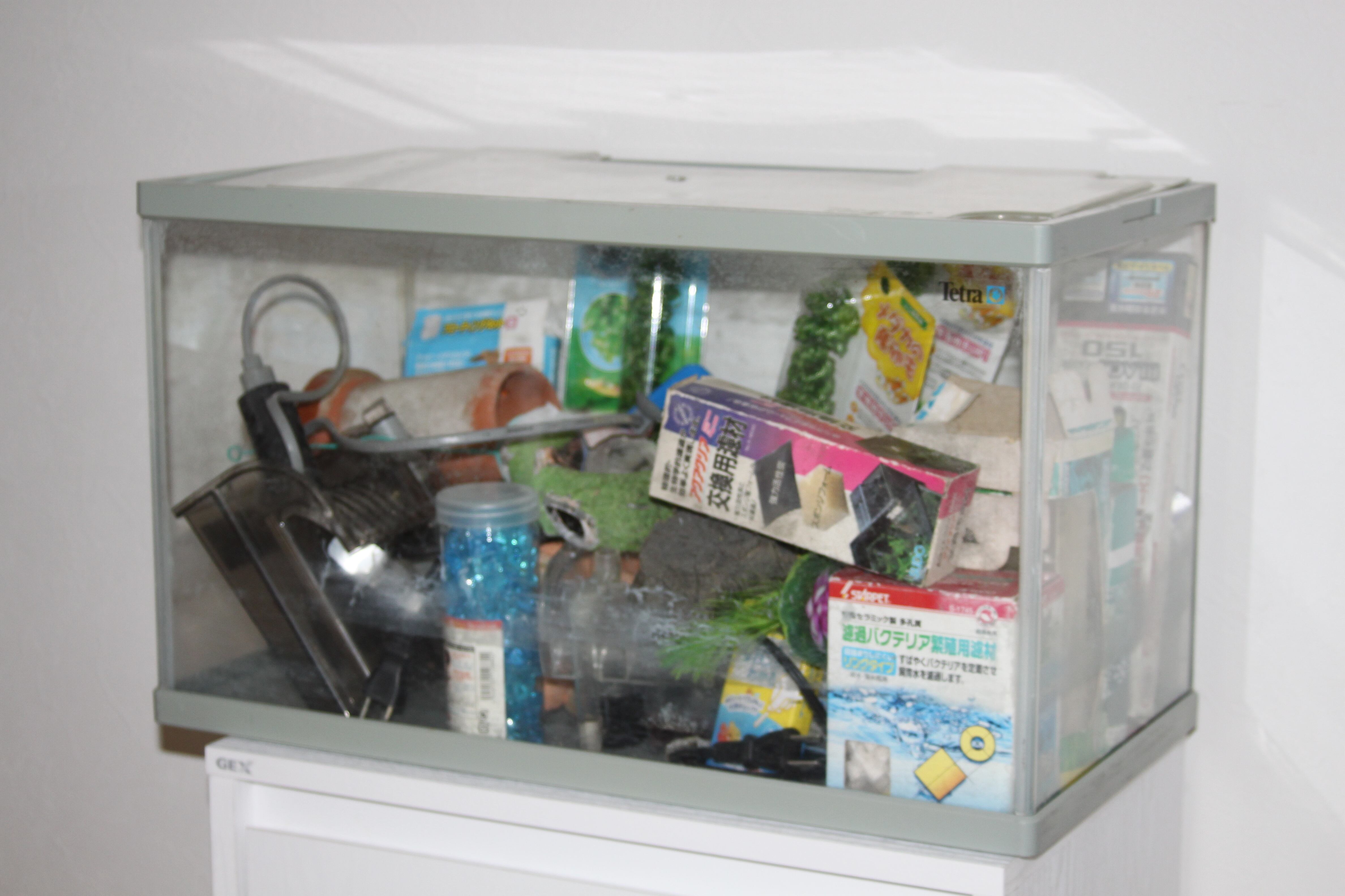 51×27×30の水槽にアクアリウム用品を詰め込んでいます。