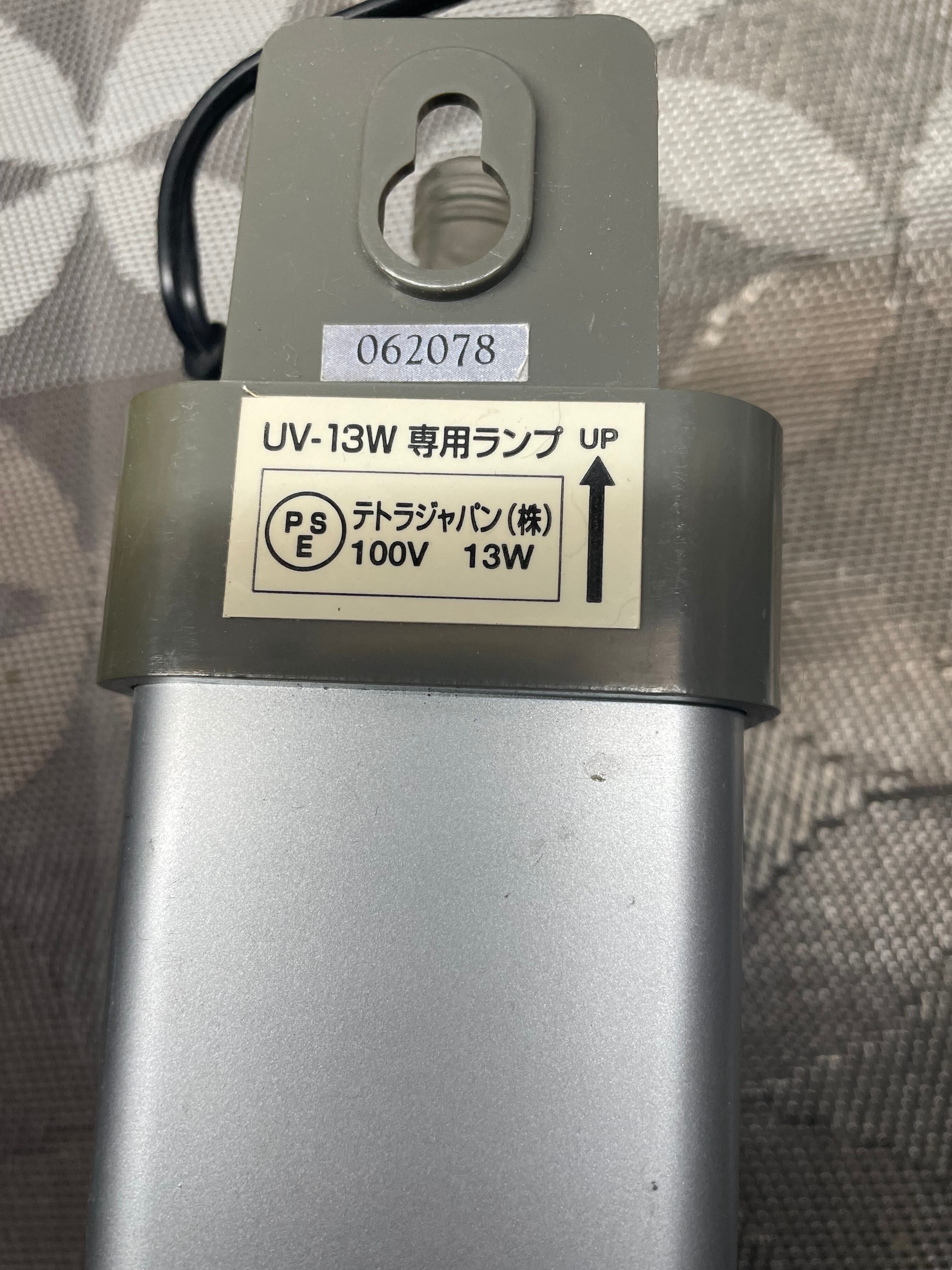 テトラの殺菌灯 UV-13Wです。通電し点灯確認をしてあります。